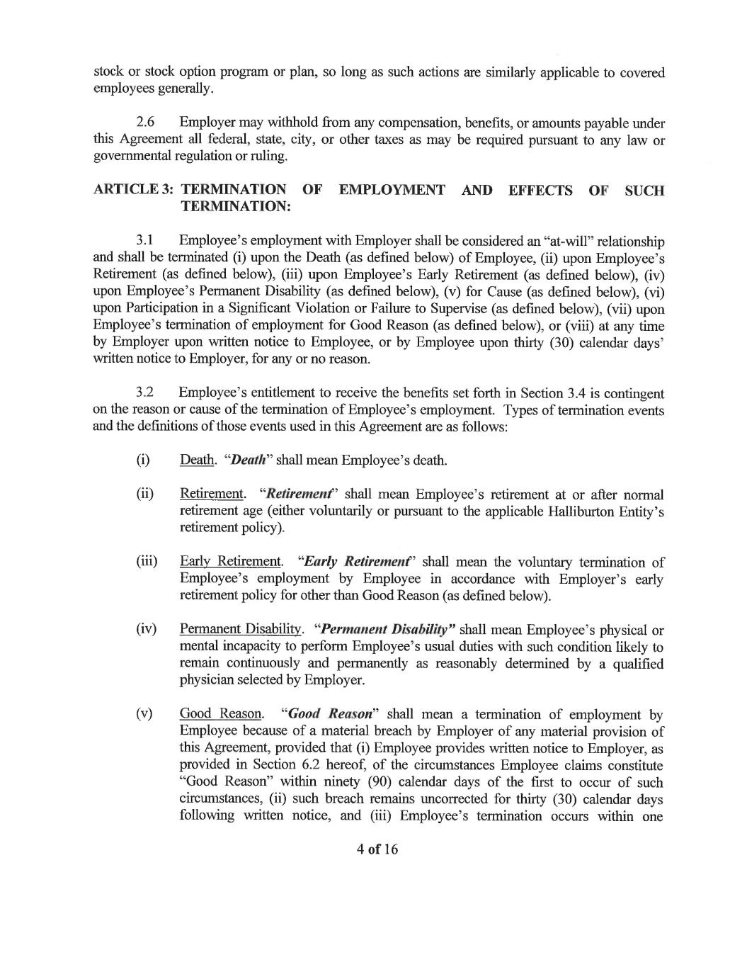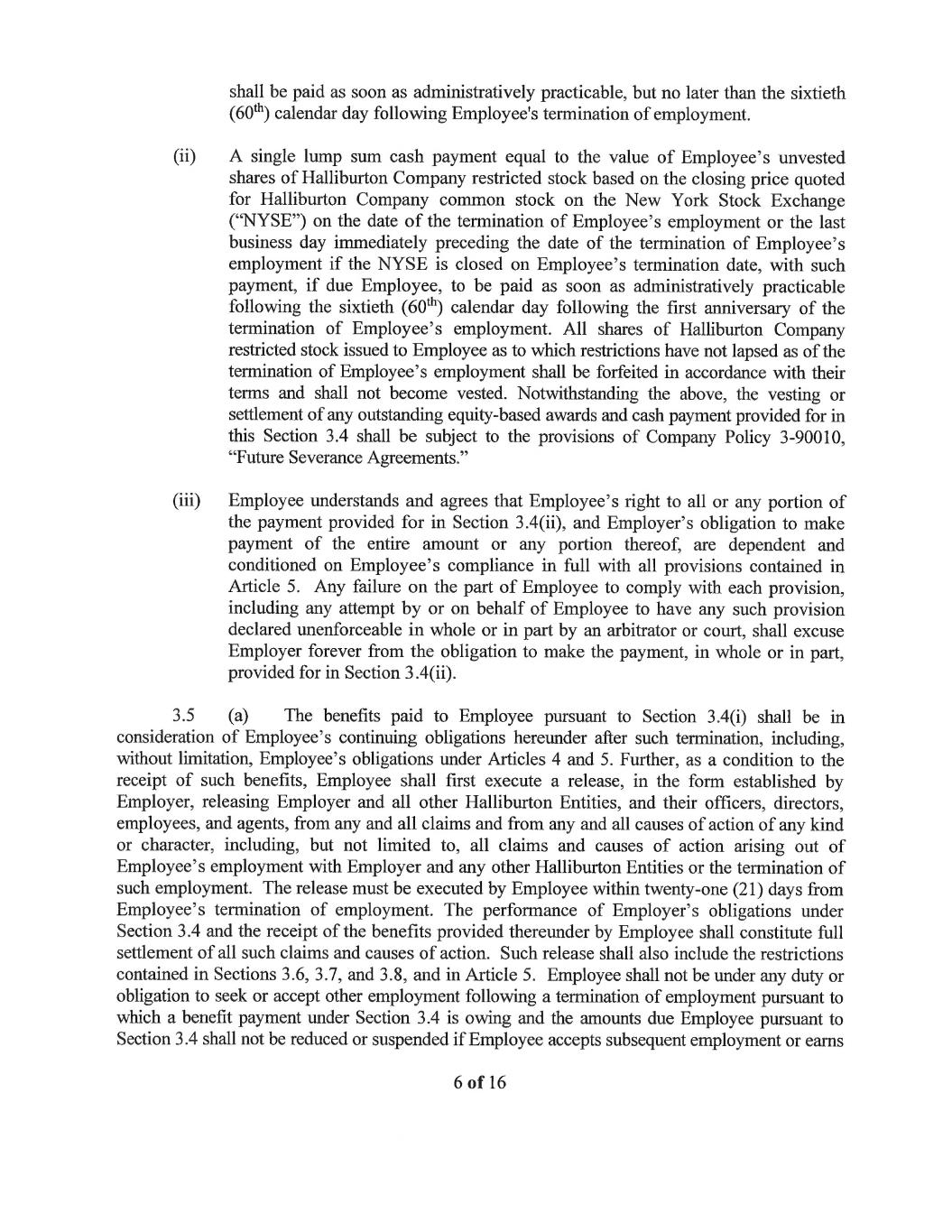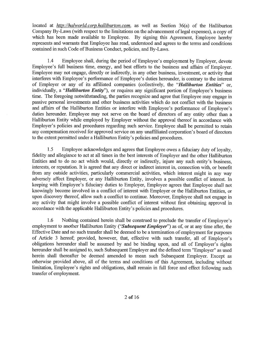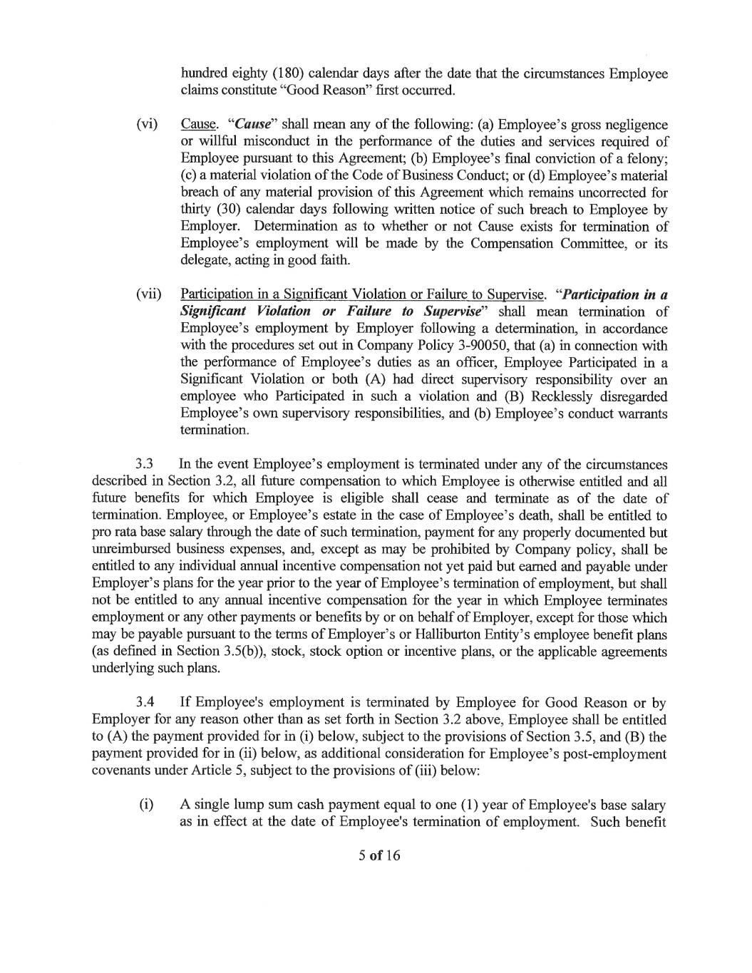 In connection with Ms. Holzhauser’s appointment, Halliburton entered into an Executive Agreement with Ms. Holzhauser effective July 16, 2025 (the “Employment Agreement”). The Employment Agreement provides for a minimum annual base salary of $450,000, participation in the Halliburton Annual Performance Pay Plan, the Halliburton Company Performance Unit Program, and the Halliburton Company Stock and Incentive Plan, and severance payments consistent with other executive officers of Halliburton, as well as other employee benefit plans and programs on the same basis generally as other executive officers of Halliburton. For additional information on these plans and programs, please read “Compensation Discussion and Analysis” in Halliburton’s Definitive Proxy Statement on Schedule 14A for Halliburton’s 2025 Annual Meeting of Shareholders filed with the Securities and Exchange Commission on April 1, 2025.