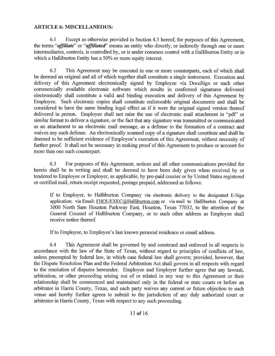In connection with Ms. Holzhauser’s appointment, Halliburton will also enter into an indemnification agreement with Ms. Holzhauser, effective July 16, 2025 and in the form generally provided to executive officers of Halliburton, a copy of which is included as Exhibit 10.33 to Halliburton’s Annual Report on Form 10-K for the fiscal year ended December 31, 2024.