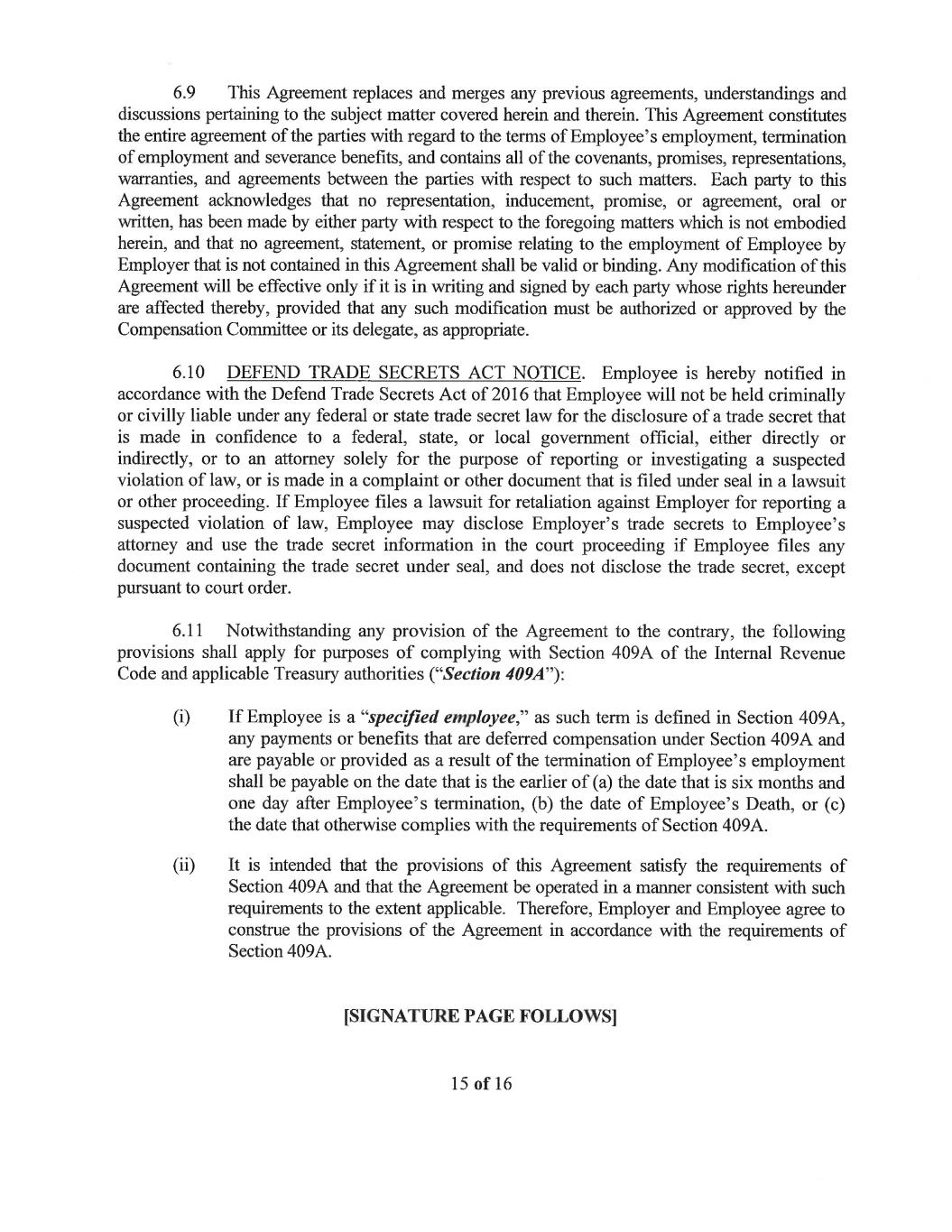 The foregoing description of the Employment Agreement does not purport to be complete and is qualified in its entirety by reference to the full text of the Employment Agreement, a copy of which is filed as Exhibit 10.1 to this Current Report on Form 8-K and is incorporated by reference herein.